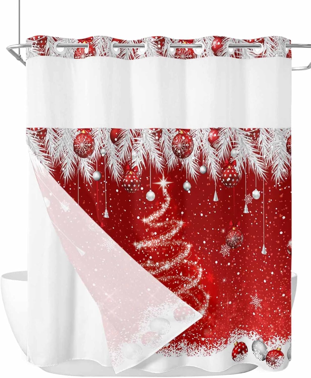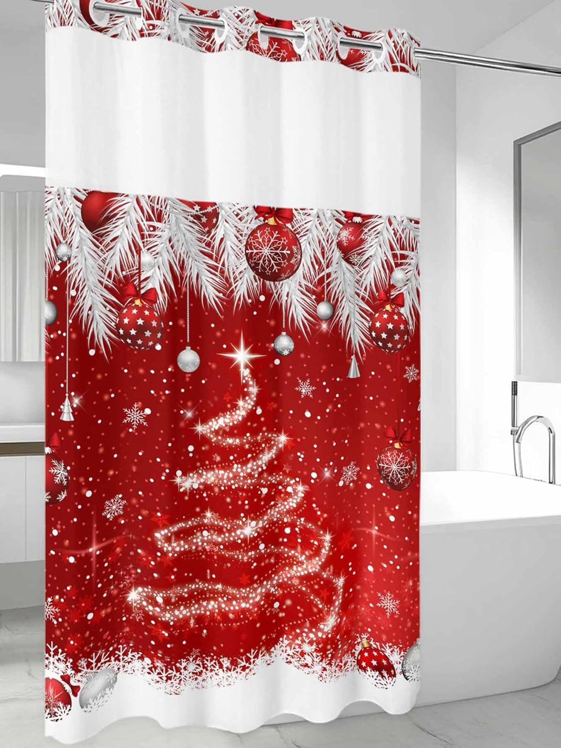 No Hook Shower Curtain with Liner Quickly create a fresh new look with this ALAGEO printed fabric shower curtain. Bring you good vibes to enjoy daily shower. Functinal Provide privacy and decorative appeal. Water proof fabri, separate the dry and wet area, which prevents the curtain soaking and the floor messes. 2 Bottom magnets on corners for added stability and to prevent splashing See through panel allows natural light to enter the shower and provides proper air circulation while maintaining privacy. Snap in Liner - Always Keep Clean It can be used as a stand-alone curtain. It can also be used with an inner liner for added protection from the splish and splash of showers and baths. The snap in liner is easy to on and off, make it convenient for your to wash and clean. Smatt Design Easy your Life- Split Rings No need to buy shower curtain rings and dealing with them falling off the curtain.It allows you to hang the curtain easily and quickly. You don't even need to remove the shower rod. Because the built in flex ring pop right over it. Use and Care: Daily: Shake off water and hang freely outside the tub,air dry. Wash: machine washable. Use only non-chlorine bleach when needed. Tumble dry on low. Note: Separate the curtain and snap liner before laundering About Us Customer satisfaction is our priority, if you are not completely satisfied with our product after receiving this bath curtain, please kindly email us, we will try our best to help you.