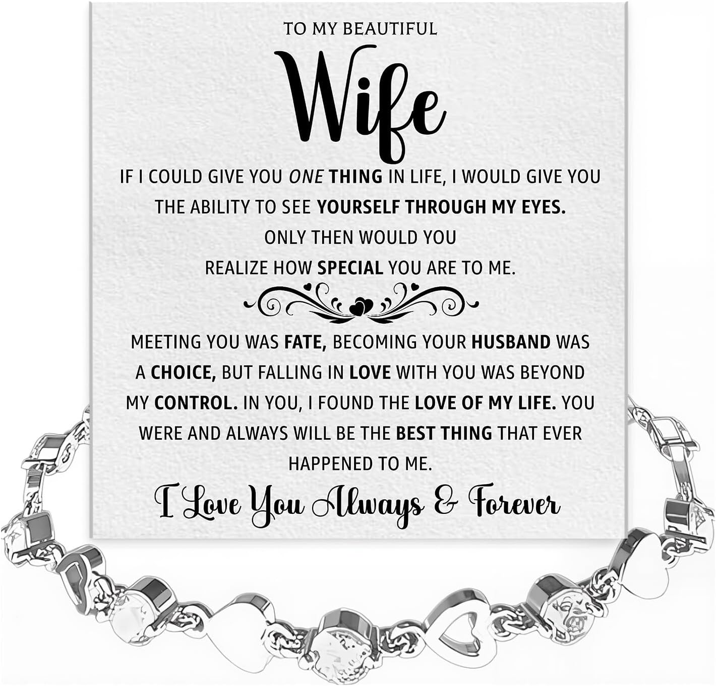 💖💖Are you searching for a gift as meaningful and elegant as the woman you cherish? Our Heart Link Bracelet is the perfect choice. Featuring delicate heart-shaped links and shimmering cubic zirconia stones, this exquisite piece captures the essence of love, appreciation, and timeless beauty. Ideal for birthdays, anniversaries, holidays, or simply to say “you’re cherished,” this bracelet is more than an accessory—it’s a radiant reminder of how much she means to you. 💖💖Our Heart Link Bracelet is crafted with 14k white gold over durable stainless steel and accented with high-quality cubic zirconia, offering brilliance and long-lasting shine. With its adjustable length of 17–21 cm, this bracelet provides a comfortable and secure fit for most wrists. 💖💖Designed with care and attention to detail, this bracelet adds a touch of sparkle to any outfit—whether worn daily or on special occasions. Its lightweight feel and elegant silhouette make it an effortless addition to her jewelry collection and a piece she’ll treasure forever. 💖💖Watch her eyes light up with joy and gratitude as she opens this beautiful gift. Presented in a complimentary soft-touch gift box—with options to upgrade to a mahogany-style LED box or Christmas Green Box—it creates a truly memorable unboxing moment. 💖💖EXCELLENT CUSTOMER SERVICE: We are committed to providing exceptional customer service and a 100% satisfaction shopping experience. If you are not completely satisfied with your purchase, simply contact us and we will resolve your issue within 24 hours.